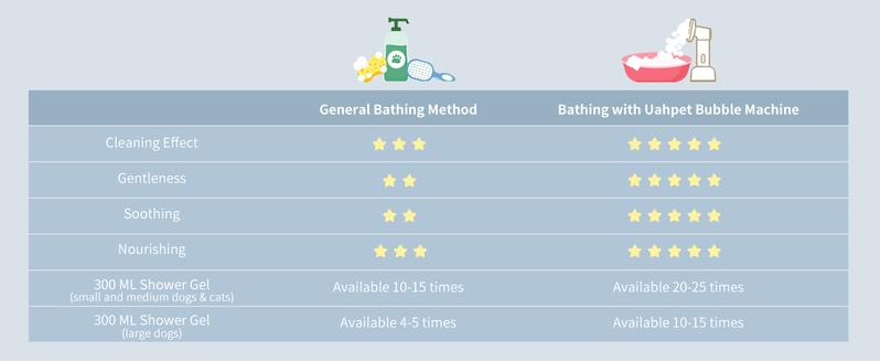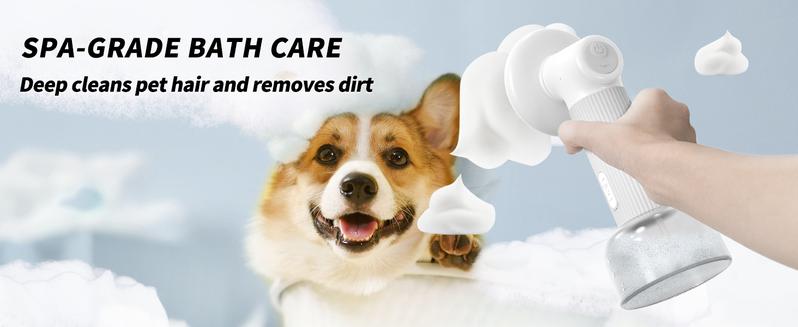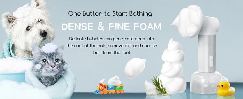 Fully automatic, uahpet's FUR-EVER CLEAN 2-in-1 dog bath brush and soap dispenser automatically creates rich and delicate foam in seconds at the click of a button. Designed to enable a comfortable shower for your puppy faster and easier.
