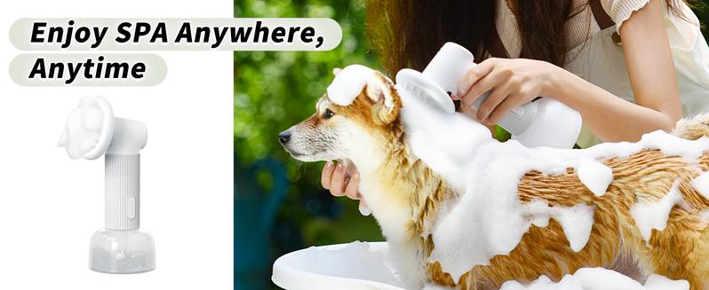 Start your hassle-free adventure with this cordless, portable, lightweight dog bubble bath brush you can take everywhere to bathe your furry kids, without always searching for a pet groomer nearby.